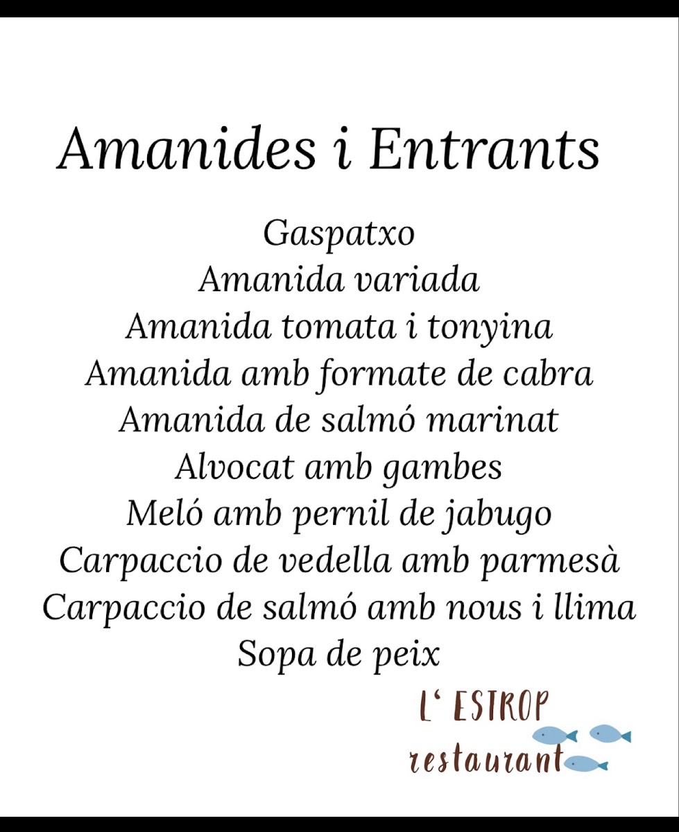 Restaurante L'Estrop Menu